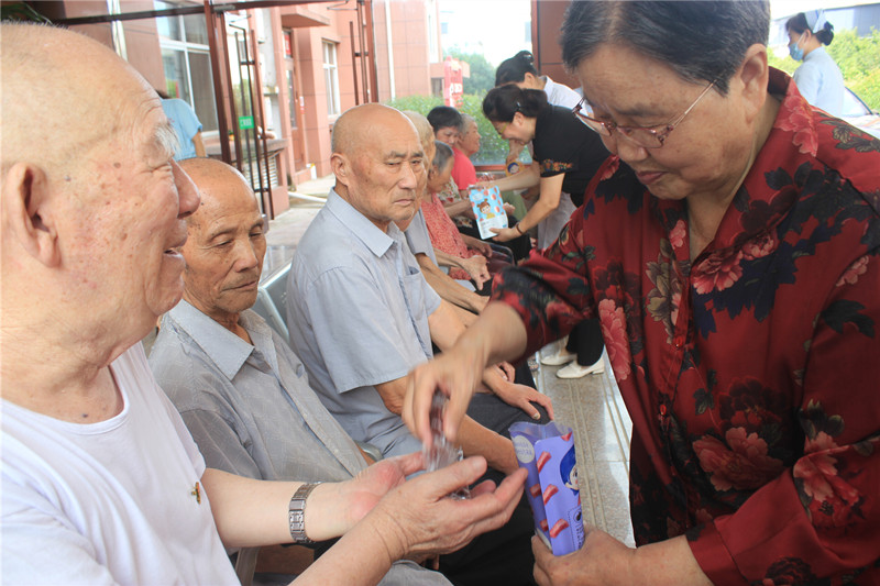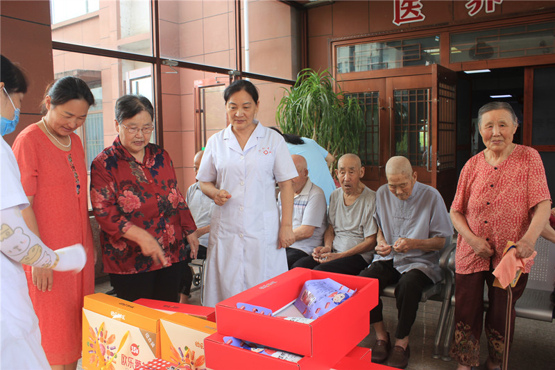 慰問活動中,工作人員為老人們送上速凍水餃、山楂片、藕粉、麥片、玉米糊等禮盒慰問品,工作人員一邊給老人們分發(fā),一邊與他們聊天,輕聲詢問他們的身體、生活情況,了解他們的需求與愿望,囑咐老人們在季節(jié)變化時(shí)要注意身體。老人們也敞開心扉,暢所欲言,使得平日里十分安靜的養(yǎng)老院一下子熱鬧了起來。
