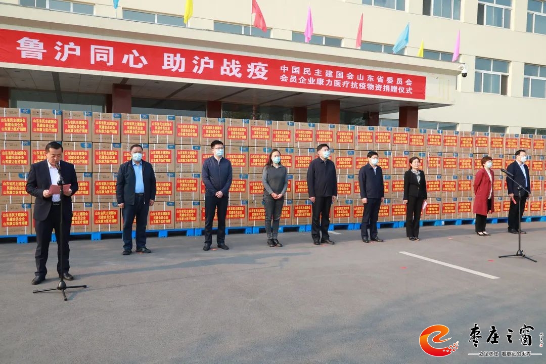 4月19日,中國民主建國會山東委員會會員企業(yè)山東康力醫(yī)療援滬捐贈儀式舉行。棗莊市委常委、組織部部長、統(tǒng)戰(zhàn)部部長包希安,市政協(xié)副主席、民建市委主委、市紅十字會常務(wù)副會長王凌,市委統(tǒng)戰(zhàn)部分管日常工作的副部長、市民族宗教局局長王虎出席。區(qū)委副書記、區(qū)長韓耀輝主持捐贈儀式,區(qū)委常委、統(tǒng)戰(zhàn)部部長、區(qū)政協(xié)黨組副書記梁棟,區(qū)政協(xié)副主席、民建市中總支主委田靜,山東康力醫(yī)療總經(jīng)理呂作文參加。